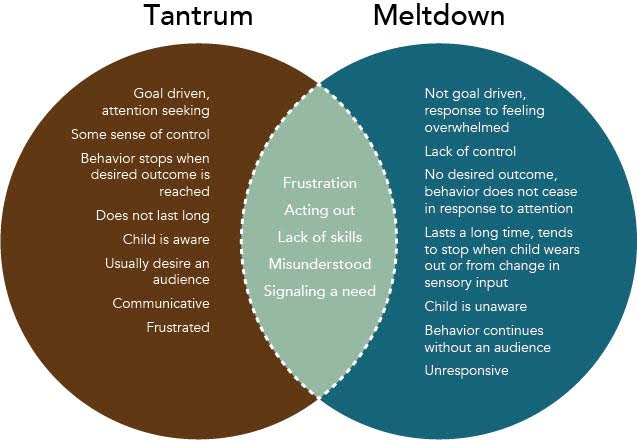 Even though they may look like the same behaviors, tantrums and meltdowns are different and require different approaches to handle each.